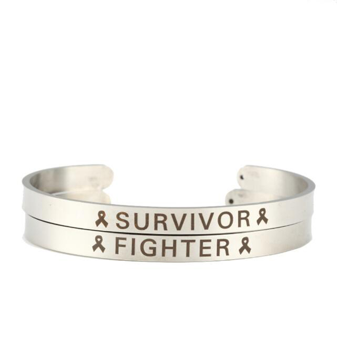 ''Survivor Breathe,Fighter Bracelet'' Positive Message Cuff Bracelet, Jewelry Gifts with Sayings & Words for Women,stainless ste