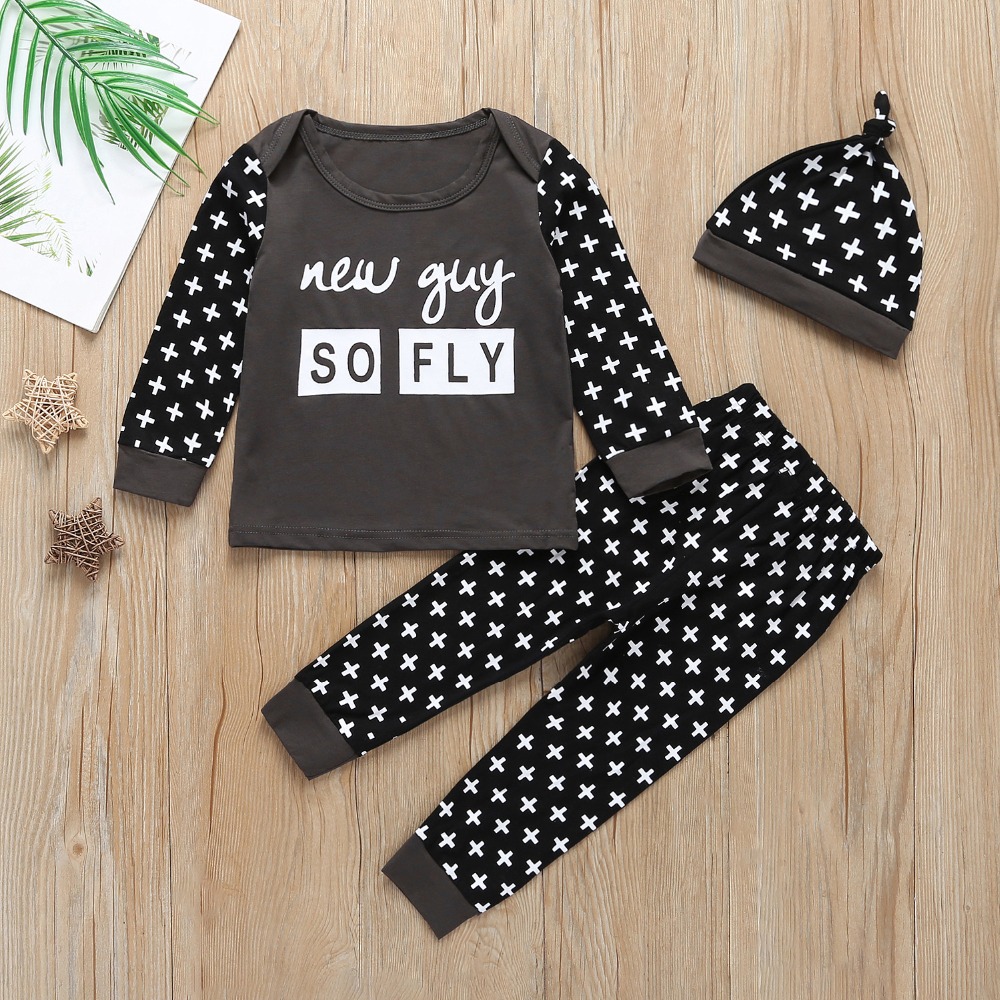 0-24M Spring Baby Boys Clothes Set Cotton Long Sleeve T-shirt+Pants+Hat Infant Set Baby Boy Clothing Sets