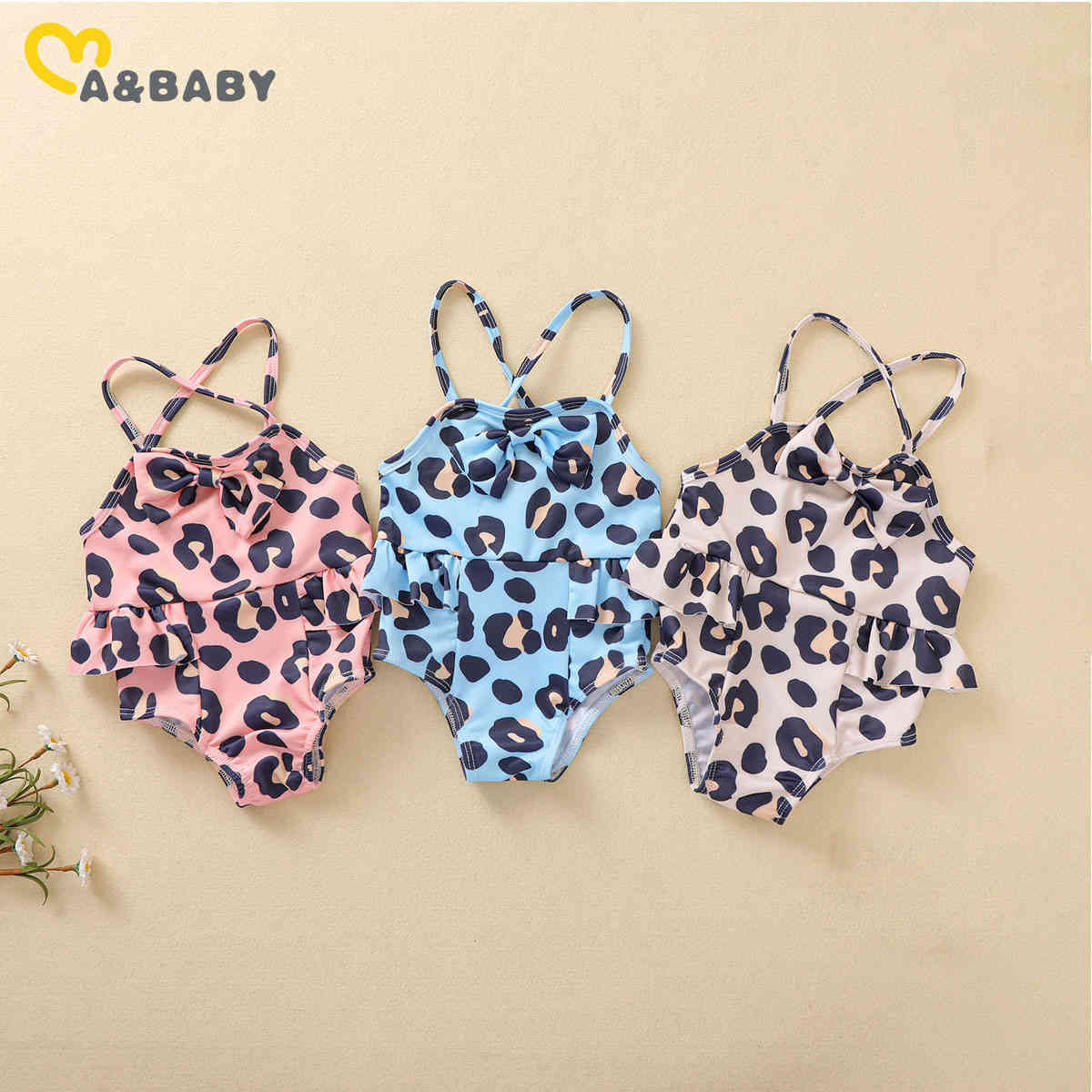 0-3Y Summer Toddler born Infant Baby Girls Swimwear Leopard Ruffles Bow Bathing Suit Beachwear 210515