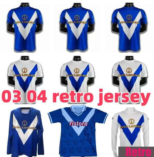 03 04 Brescia Calcio Mens 97 98 Maglie da calcio retrò DI BIAGIO BAGGIO MARECO Home Blu Away Maglia da calcio vintage bianca Manica corta Uniformi p