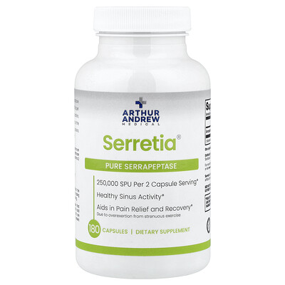 Arthur Andrew Medical, Serretia®, Pure Serrapeptase, 180 Capsules (125,000 SPU per Capsule)