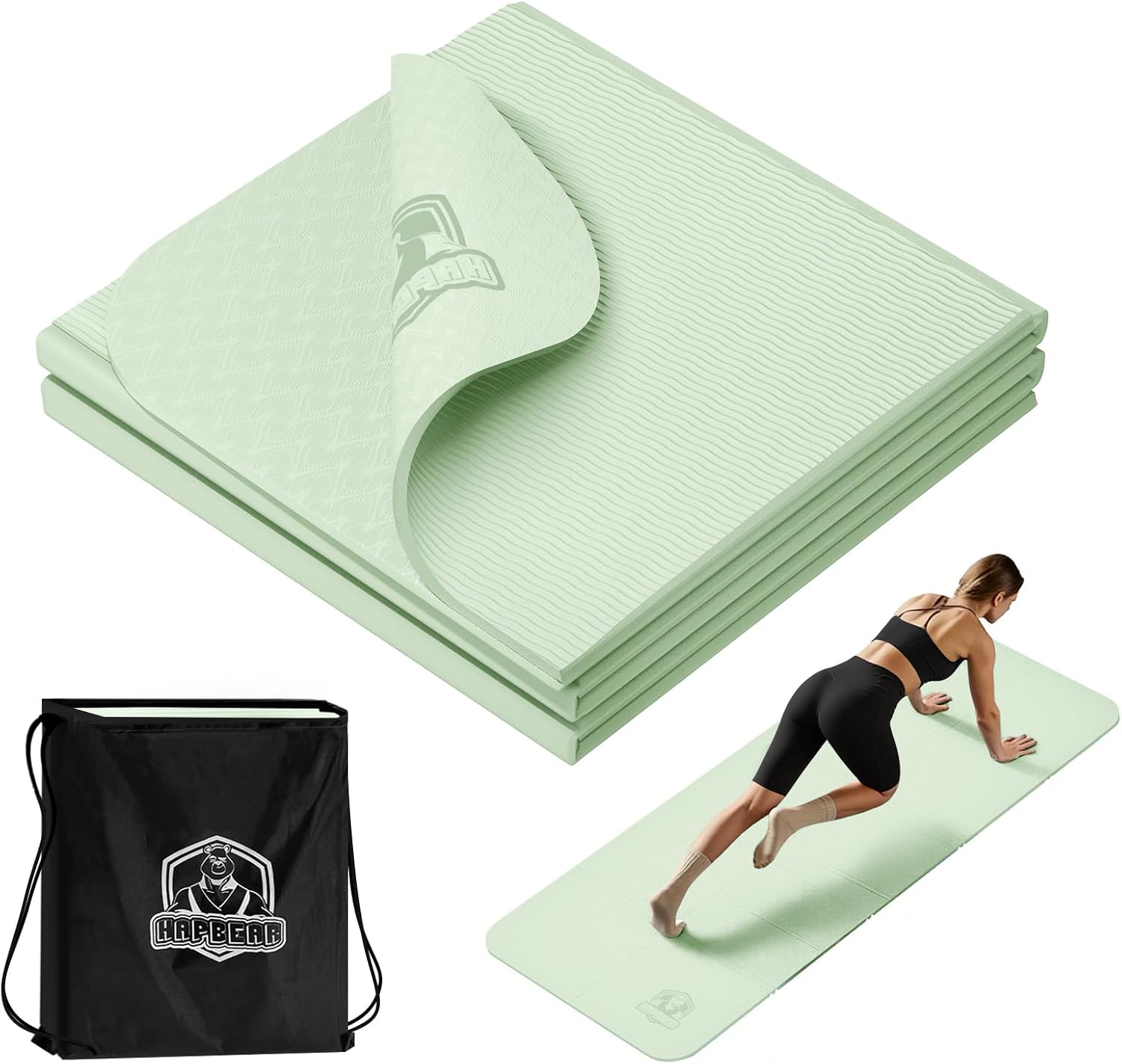 HAPBEAR Foldable Yoga Mat - 72"x24"x0.24" (6mm), Non-Slip TPE Exercise Mat for Home Workout, Yoga, Pilates,Stretching, & Travel, Durable & Eco-Friendly, Includes Carry Bag