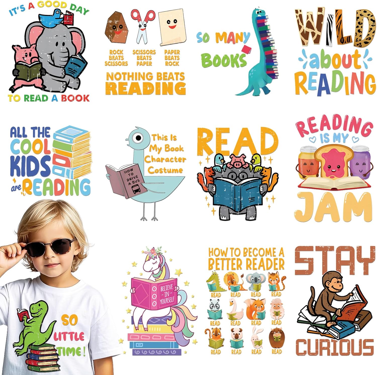 - ✓Satisfy Your Decoration Needs: you will receive 12 sheets of reading book iron on transfers, which are rich in quantity and various in styles, can well meet your decoration, sharing and replacement needs